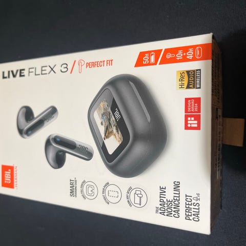 JBL Live Beam 3 trådløse in-ear høretelefoner i sort. Modellen leveres med et kompakt opladeetui med indbygget display, der viser information om blandt andet batteristatus og lydindstillinger. Høretelefonerne er in-ear typen med silikonepropper, der hjælper med at lukke omgivende lyd ude. De understøtter aktiv støjreduktion (ANC) samt ambient sound-funktion, så man kan regulere, hvor meget af omgivelsernes lyd der lukkes ind. HELT NY og med kvittering og garanti.