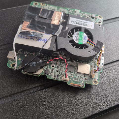 NUC NUC10i3 med i3-10110u, 32 Gb Ram, 1 TB Samsung NVME. Nyinstalleret med Ubuntu 25.10 og LibreOffice. Bare Ram og NVME er de 1850 Dkk værd ;o) Documentation: