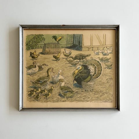 Tryk - tegning af kalv af Jeppe Andreas Larsen (Johannes Larsens barnebarn) Mål 65,5 x 49 cm - indrammet med glas og sort smal træramme - i pæn stand