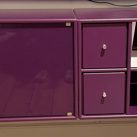 Montana tv-møbel i grå farve. Møblet består af åbne rum, et skab med låge samt sektion med skuffer, der giver mulighed for opbevaring af fx elektronik, kabler og andre mindre genstande. Egnet som tv-bord eller mediemøbel i stue eller opholdsrum.