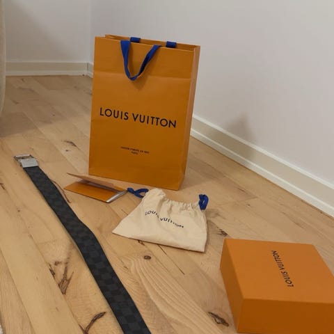 Louis Vuitton herrebælte læder i sort. Bæltet har sort LV-spænde og brun inderside i læder. Længden er markeret som 115 cm. Velegnet til både mænd og kvinder og kan bruges til både hverdag og mere fancy outfits.
