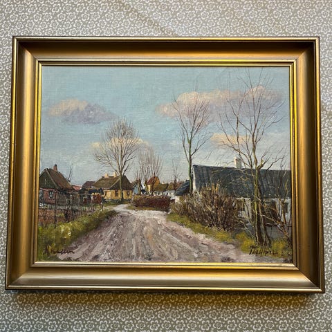 Oliemaleri på lærred, 46x38 incl. ramme.