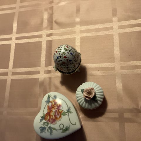 Multifunktionelt: Ovalt + Hjerteformet Lak skrin, pilleæske, lakæske, lågskrin, smykkeskrin fra ca. begyndelsen af 80'erne