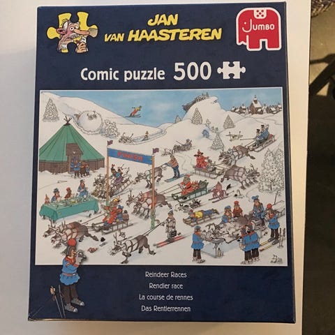 Jumbo That’s Life puslespil med motiv af en farverig og detaljeret byscene. Puslespillet består af 1000 brikker og leveres med original æske.