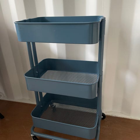 IKEA RÅSKOG utility cart in black for sale. The cart is in very good condition and fully functional. All wheels roll smoothly, and the structure is stable and sturdy.