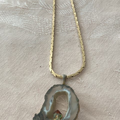 Medaljon halskæde i guldfarvet metal gl. medaljon måske 1930-1950 erne