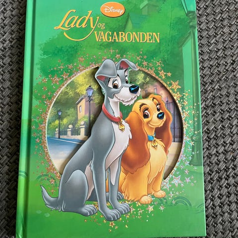 Disney Lady og Vagabonden billedbog. Bogen er på dansk og indeholder farveillustrationer til den klassiske historie om hundene Lady og Vagabonden. Enkelte sider er løse.