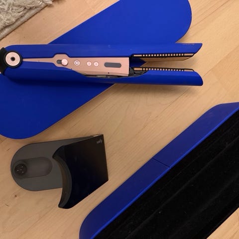 Dyson Corrale glattejern i lilla med tilhørende oplader, ladestation og etui. Trådløst design med mulighed for brug med ledning via opladeren. Glattejernet er egnet til udglatning og styling af hår og kan anvendes til forskellige hårlængder og hårtyper. Farve: lilla/sort. Velegnet til både daglig brug og mere detaljeret styling af frisurer.
