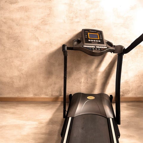 Løbebåndet har både panelbetjening og fjernbetjening, og det har stødabsorbering som gør løbet mere skånsomt.