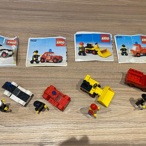 Ældre byggesæt med blandede modeller af køretøjer, både og bygninger. Samlingen omfatter blandt andet lastbiler, personbiler, ambulance, fly, arbejds- og redningskøretøjer, samt flere både og en mindre bygning.