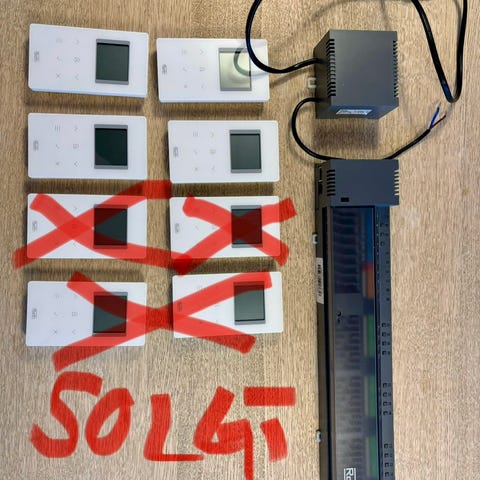 Haves: 1 controller og 4 termostater (de 4 med rødt kryds ❌ på fotos er solgt)