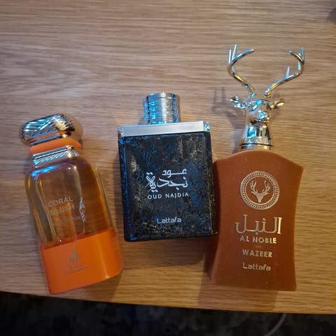 Parfumesæt. Har ikke åbnet mini-parfumen. Har brugt en smule af deodoranten og den store parfume. Købt d. 8/12-2025.