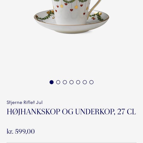 6 stk. højhankskop og underkop, 27 cl - nypris 599 kr - sælges for 250 kr.