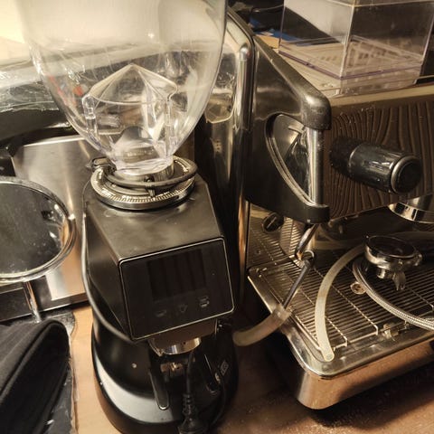Lækker kaffekværn fra Pro Barista DF64 gen. 1 I fed bronze metallic farve. Opgraderet med coatede titanium burrs (ikke SSP) originale knive medfølger også. Ekstra tragt (3D printet)