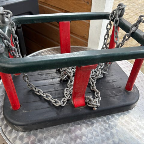 Børnegynge med sele og karabinhager og skruer og manual. Kun brugt indendørs. Fra ikke-ryger- og dyrefrit hjem. Op til 40 kg.