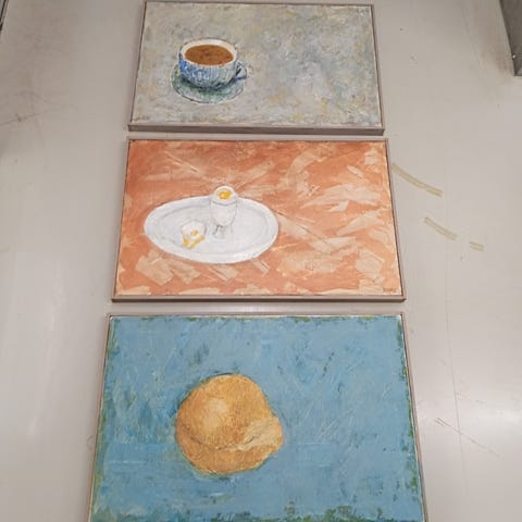 "Svaneprinsessen på eventyr". Akryl og slagmetal. 110 x 90 cm.