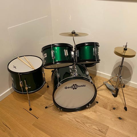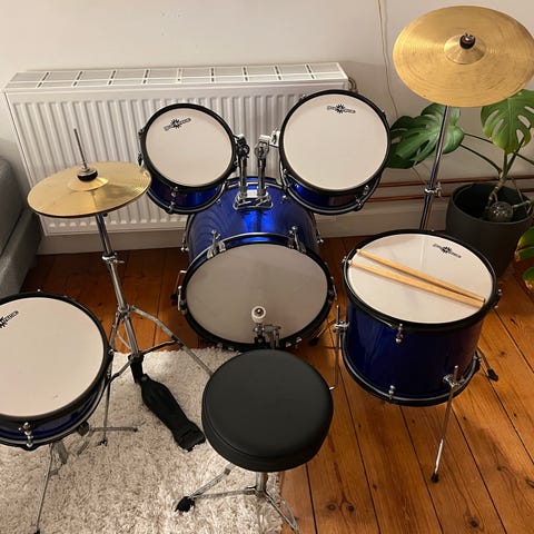 børnetrommesæt med stol.
