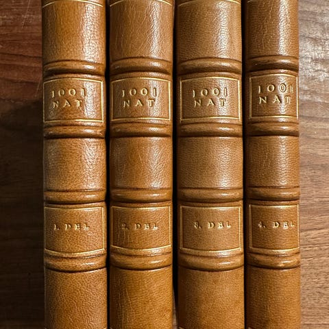 1001 Nat. Bind 1-4, J.Østrup. Red., genre: eventyr, Paa ny udgivet efter Valdemar Thisteds danske Gjengivelse. Indledning og Noter af J. Østrup. Vignetter og Friser af Hans Nic. Hansen