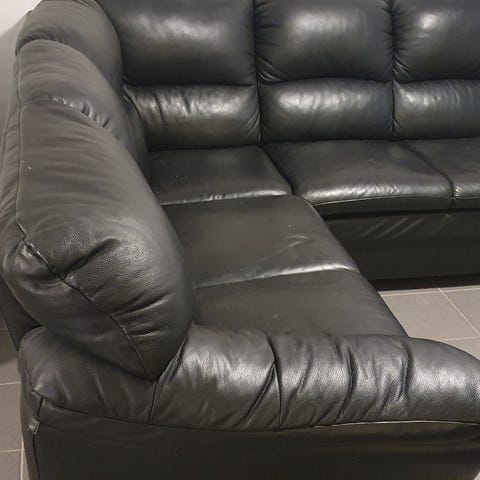 Sort læder, ægte, hjørnesofa. Dansk design.