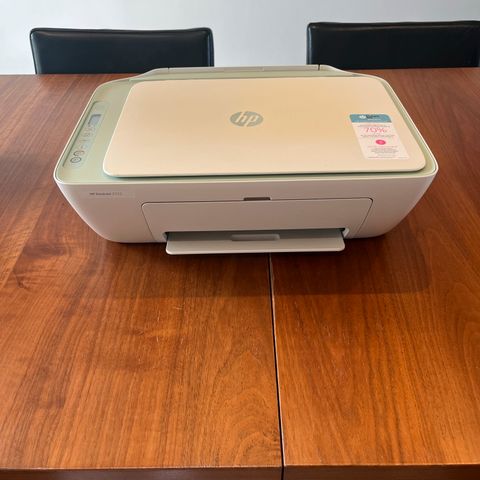 HP DeskJet 2130 multifunktionsprinter i hvid. Enheden kombinerer printer og scanner i ét kompakt kabinet, egnet til almindelige print- og scanningsopgaver i hjemmet eller på et lille kontor. Tilslutning sker via kabel. Modellen er designet til brug med HP-blækpatroner og standard A4-papir.