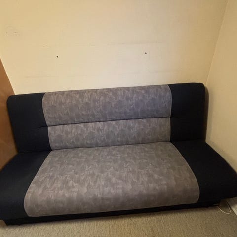 Sovesofa som er brugt i nogle år. Den fremstår som på billederne med god opbevaring under. Den har en plet som også fremgår af billederne.