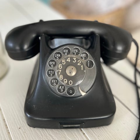 Flot gammel drejetelefon i grøn - drejeskive under telefonen. Super fin stand.
