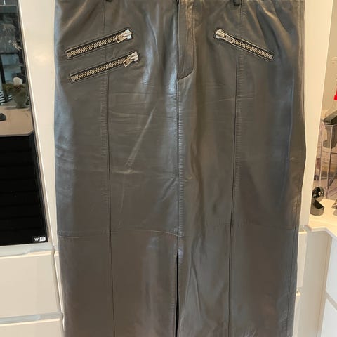 CKK of Scandina,made by Pelsnoer nederdel i brun-grå,blød lammeskind i størrelse 36. Klassisk, knælang model med lynlås- og knaplukning bag. Nederdelen har glat overflade og er foret indvendigt for øget komfort. Velegnet til hverdagsbrug eller mere formelle anledninger.To slids foran det giver er nemt bevægelse. Meget lækker aldrig brugt,fik i gave men er for lille. Fra ikke ryger hjem. 1200kr er butikspris.