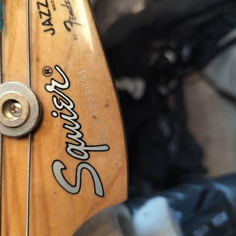 Squier Jazz Bass med serienummer E1025001 er en eftertragtet model fra den tidlige koreanske produktion. Fremstillet af Young Chang-