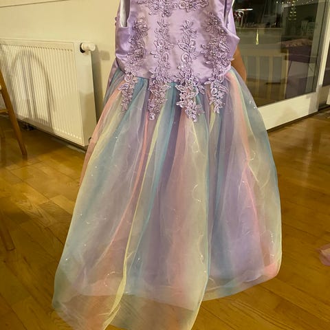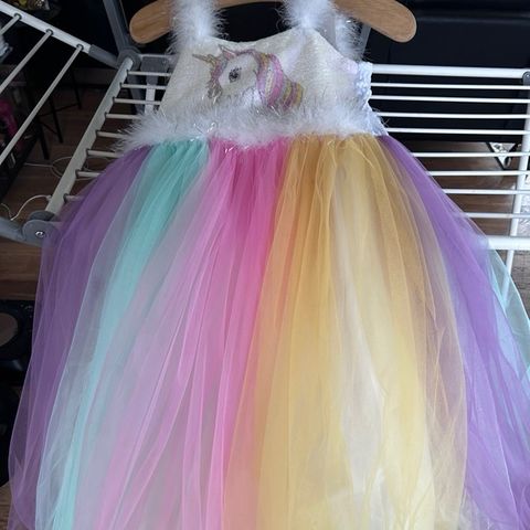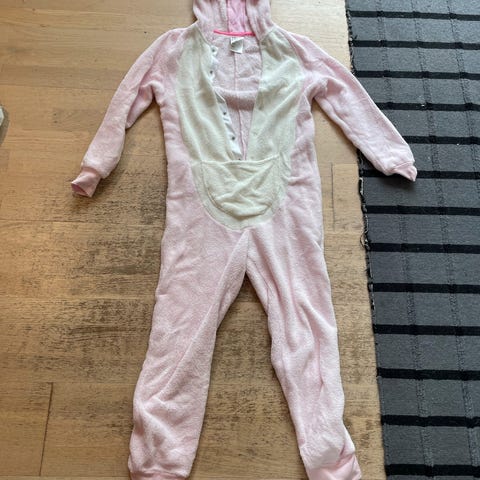 Unicorn kostume med sølv vinger og hale. Heldragt der lukkes med lynlås foran og hætte med unicorn horn, øre mm.