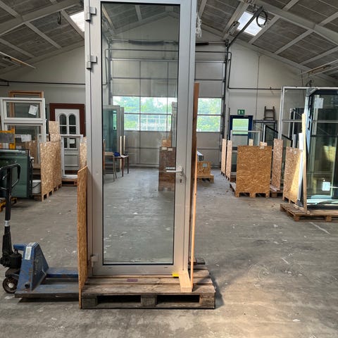 Rationel. ral 6007 gl.30 flaskegrøn alu udv og hvid indv. mål højde 2288, dør bredde 968 og 2 vinduer bredde 788, sælges helst samlet. Ny pris 18750kr Bud modtages.