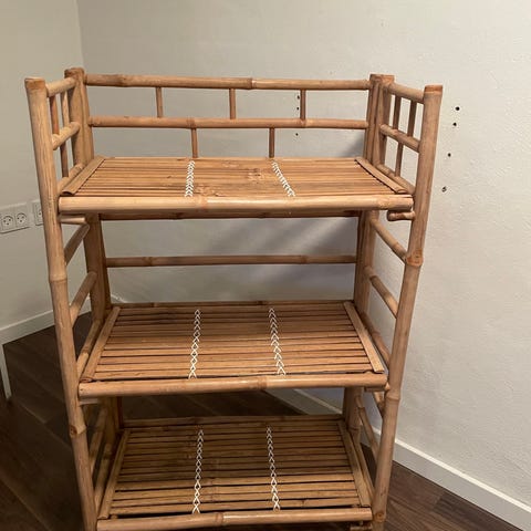 Giv hjemmet et varmt, naturligt udtryk med denne slanke reol i bambus. Den fritstående hylde på 33 × 33 × 146 cm udnytter højden optimalt og frigør gulvplads, så du kan organisere selv smalle kroge. Den robuste konstruktion i bambus giver stabilitet og holdbarhed, samtidig med at det naturlige træ passer ind i både moderne og klassiske indretninger.