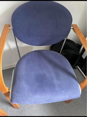 Robuste stabelstole i blåt stof – Perfekt til mødelokale, kontor eller forening