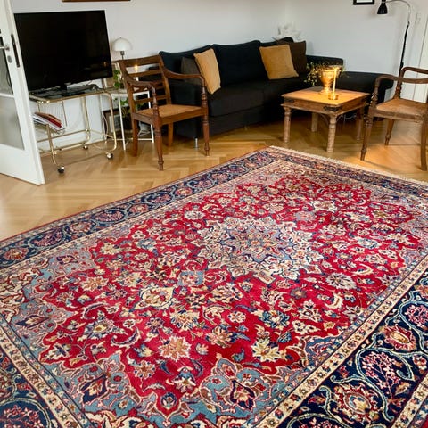 Persisk Iransk ægte vægtæppe m/ silke købt i Danmark i 1970'erne fra en respekteret lokal forhandler af ægte tæpper, Th. Thomasen & Søn.