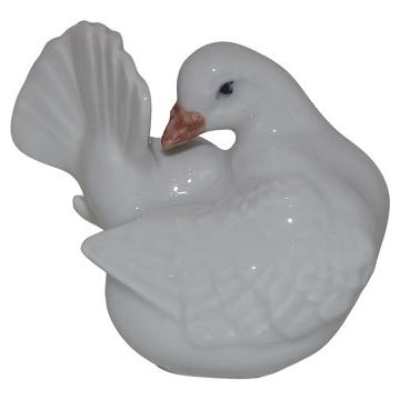 Stil fra ca.60'erne; muligvis inspireret af Jeanne Grut, Royal Copenhagen no. 4787 Due, hvid viftehale due, fredsdue keramikdue
