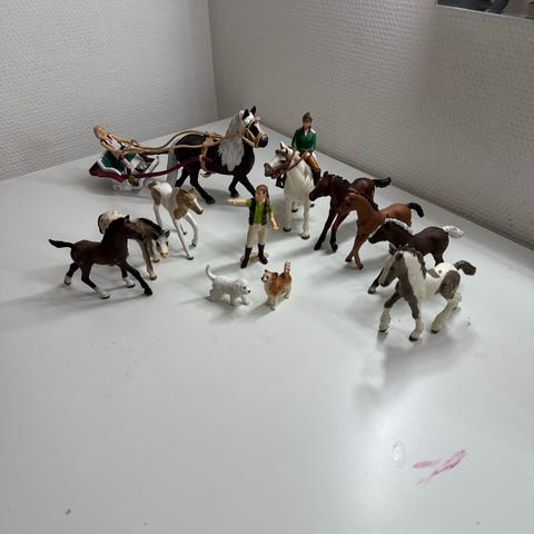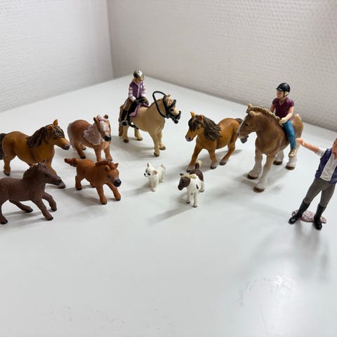 Sættet består af flere heste i forskellige størrelser, føl samt en kat. Der medfølger også to menneskefigurer og lidt rideudstyr.