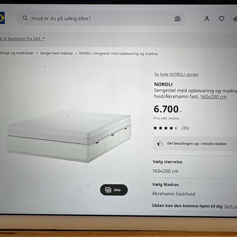 Sælger vores seng, da vi skal have noget andet. Den er ca. 1 år gammel og kostede 11.000 kr. fra ny.