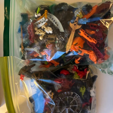 LEGO Bionicle figurer og sæt. Flere forskellige Bionicle-figurer med tilhørende beholdere ses på billederne. Sættene består af saml-selv robotfigurer med bevægelige led og våben/udstyr. Der medfølger tilhørende plastikbeholdere til opbevaring samt trykte byggevejledninger til nogle af modellerne. Velegnet til samlere eller til leg med Bionicle universet.