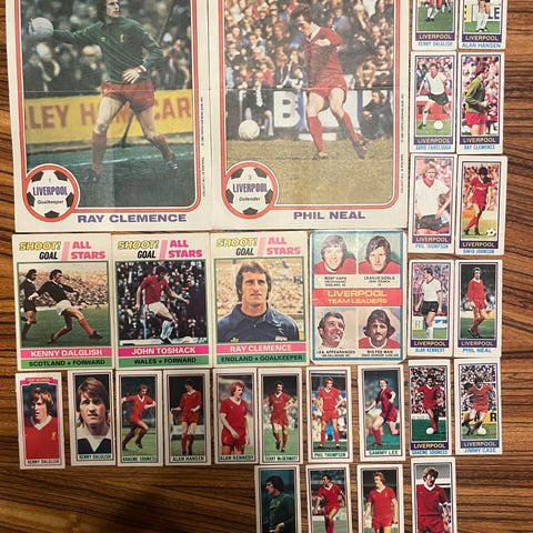 26 stk. fodboldkort og 1 miniplakat af fodboldspillere fra Arsenal 1976-81.