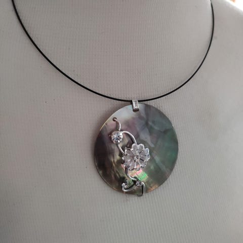 Tibetansk rundt perlemorstykke.
