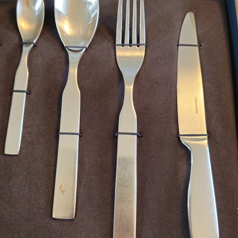 BSF bestiksæt i rustfrit stål i sølvfarve. Sættet indeholder knive, gafler, spiseskeer og teskeer i et enkelt, glat design. Velegnet til daglig brug ved spisebordet eller som ekstra sæt til gæster og større arrangementer.