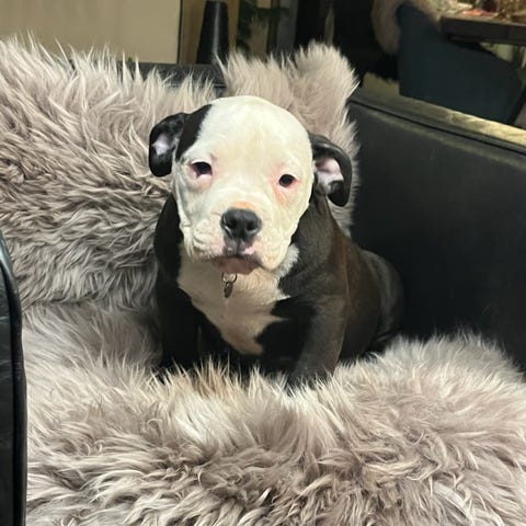 Vi søger et nyt og kærligt hjem til vores engelske bulldog Berta, 7 år (fylder 8 år i september 2026).