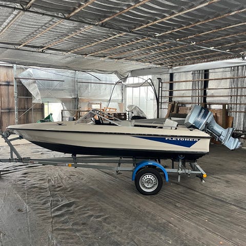 Fletcher Arrowsprint 13 fods 4 personers speedbåd der nemt trækker vandski og badering, og er meget hurtigt på vandet.