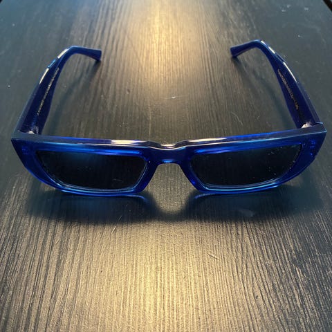 The glasses have a minor scratch on the left lens (left as you see the final photo). Otherwise, they are in good condition as you are also able to see in person.