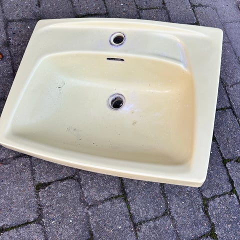 Klassisk og flot retro håndvask i porcelæn fra 1970'erne. Har ingen skader og bliver som ny med en god rengøring.