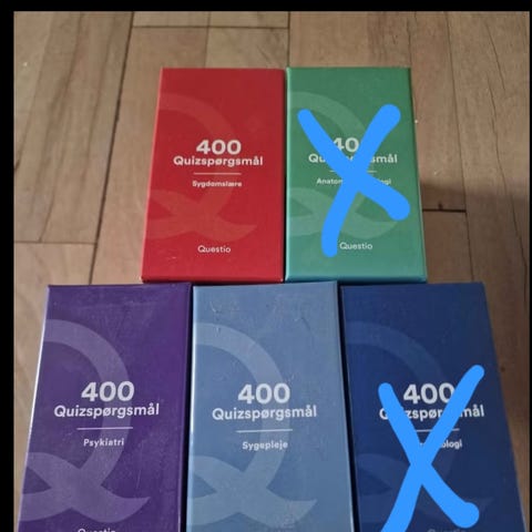 Kortene er trykt i forskellige farver og leveres i separate æsker, hvilket gør dem overskuelige og nemme at bruge. Perfekt til repetition, eksamenstræning og fælles quiz på sygeplejestudiet eller andre sundhedsfaglige uddannelser.
