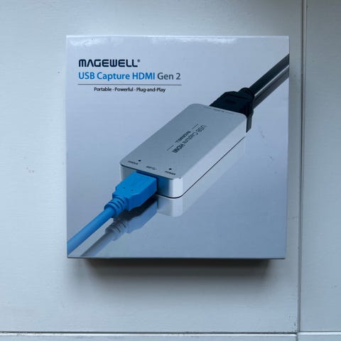 Magewell Ultra Stream HDMI Video Mixer og Streamer med flere HDMI-indgange, USB-port, LAN-forbindelse, og touchskærmskontrol. Enheden understøtter 1080p opløsning og tilbyder funktioner som lydmixing, automatisk følge, og streaming til forskellige platforme via RTMP. Dimensioner: 185 x 107 x 19,5 mm.
