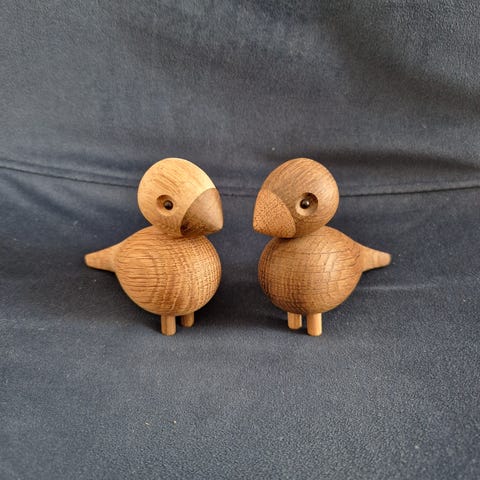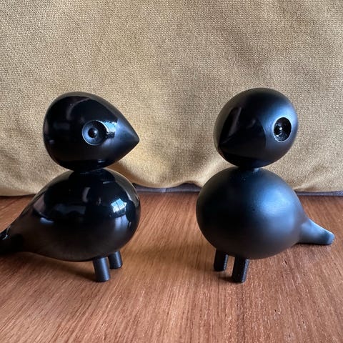 Kay Bojesen turtelduer i sort. Sættet består af to fugle i træ, i original æske som vist på billederne.