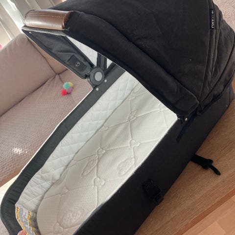 Liggemål 76 cm. Kan ligge i Emmaljunga barnevogne med liggemål 98 cm.