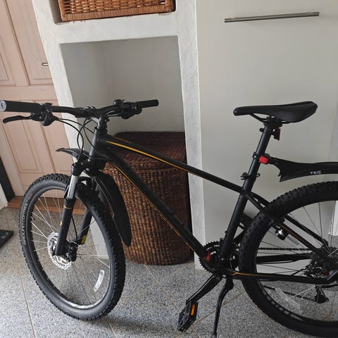 ISAAC mountainbike til herre i størrelse M/L med 27,5" hjul. Passer til en mand på 183 cm og deromkring. Cyklen har aluminium styr, aluminium sadelpind og Rock Shox forgaffel. Udstyret med Shimano XT skivebremser og let brugte Continental Xking 2.2" dæk. Cyklen har fået monteret nyt Shimano XT one speed og er næsten ubrugt dog har kæden fået lidt rust og bør skiftes. Afhentes i Hillerød.
