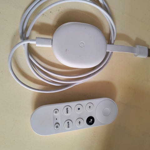 Google Chromecast med fastmonteret HDMI-stik og USB-kabel til strømforsyning. Enheden tilsluttes tv’ets HDMI-indgang og får strøm via USB. Velegnet til streaming. Virker helt som den skal, sælges da jeg har 2 af dem